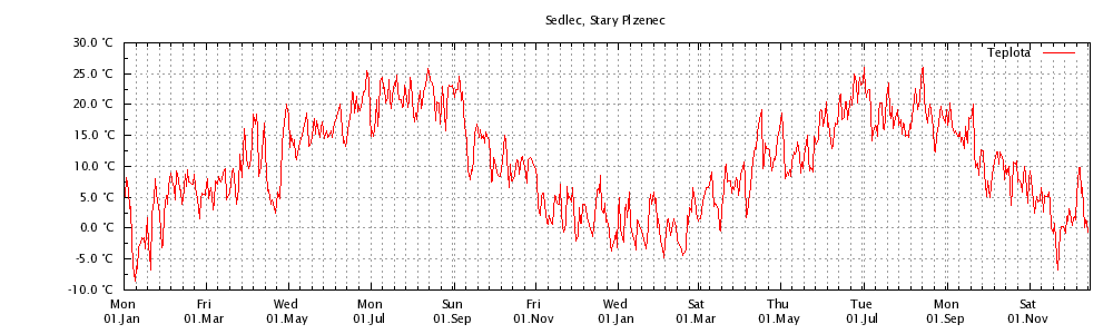 Grafy teploty meteorologicke stanice / Graphs of temperature meteorological station Sedlec, Stary Plzenec